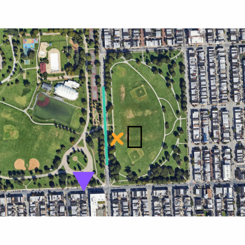 We play at Patterson Park Annex, in Southeastern Baltimore City, meeting at the southwest set of uprights (orange X). There’s plentiful free parking on S Linwood Ave (teal line) along with plenty of touchers biking or walking to the park. Depending on who’s available to play there might be carpool opportunities if you need a ride (or want to help save the planet!).
